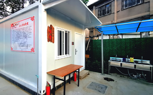 中央商務(wù)區(qū)正太廣場(chǎng)項(xiàng)目部,根據(jù)現(xiàn)場(chǎng)實(shí)際情況及廣場(chǎng)圖紙,因地制宜,利用原地道橋位置進(jìn)行簡(jiǎn)約化設(shè)計(jì),占地東西長(zhǎng)40米,南北寬20米。麻雀雖小五臟俱全,項(xiàng)目布局充分利用移動(dòng)板房外立面做文化設(shè)計(jì),用作公司簡(jiǎn)介宣傳墻、食堂文化宣傳墻及旗桿背景墻。項(xiàng)目部除辦公區(qū)外,還設(shè)置了餐廳、獨(dú)立衛(wèi)生間、淋浴間等生活設(shè)施以及微景觀種植園等休閑場(chǎng)所,整個(gè)項(xiàng)目部簡(jiǎn)約而不簡(jiǎn)單,注重以人為本,盡可能提高項(xiàng)目部人員工作、生活水平,激發(fā)了干部職工干事創(chuàng)業(yè)的激情,為推進(jìn)項(xiàng)目建設(shè)提供了有力支撐。