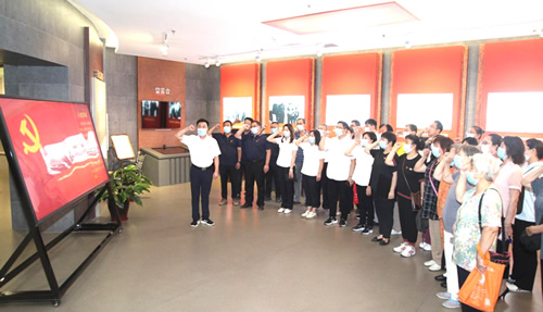 公司組織黨員干部和街道辦、社區(qū)黨員干部以及光榮在黨50年的老黨員代表,到石家莊解放紀(jì)念館參觀學(xué)習(xí),深入學(xué)習(xí)革命先烈解放石家莊的英勇事跡,爭(zhēng)做紅色基因傳承者。參加活動(dòng)的老、中、青三代黨員面對(duì)黨旗再次莊嚴(yán)宣誓,堅(jiān)定聽(tīng)黨話、跟黨走。